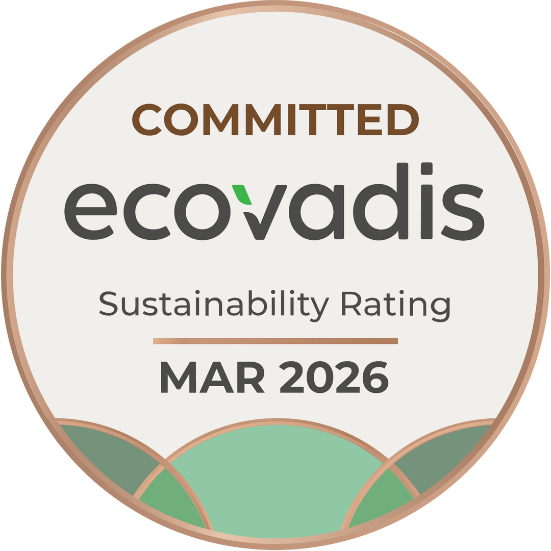 ecovadis bietet weltweit anerkannte und vertrauenswürdige Nachhaltigkeitsratings für Unternehmen. Das Abzeichen bietet einen Branchenvergleich und dient der Rückverfolgung von Lieferketten. Die Methodik ist auf globale Rahmenbedingungen und regulatorische Anforderungen abgestimmt.