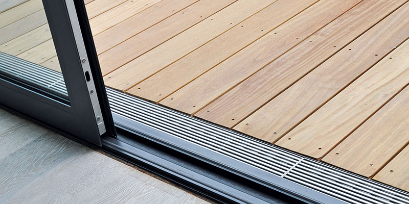 Le caniveau de terrasse en bois ACO type 2.0 se distingue par le nouveau raccord de caniveau qui sert également de couche de séparation. De plus, le système réduit considérablement les éclaboussures d'eau de pluie grâce à la perforation adaptée au niveau du sol, sur les grilles à mailles ACO. Une réduction de la hauteur de raccordement de l'étanchéité de l'ouvrage selon les normes DIN 18531 et DIN 18533 est réalisable sans problème avec le nouveau système. La largeur de construction de 15,5 cm et surtout de 20 cm permet de réaliser facilement l'accès sans barrière souhaité dans le bâtiment avec une terrasse en bois. La pose du système sur la sous-construction est facile grâce à la hauteur de construction de 21 mm. Un entraxe de 50 cm est prévu, il ne faut pas dépasser 70 cm. Les caniveaux peuvent également être posés sans raccord de caniveau.